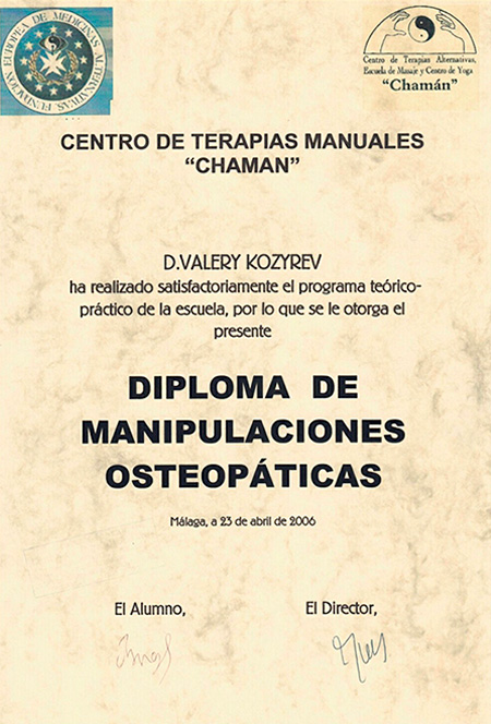 De origen Siberiano, lleva más de 15 años en España formándose en las mejores técnicas para paliar el dolor gracias a la Osteopatía. Sus clientes alaban sus técnicas que consiguen eliminar incluso dolores antiguos y lesiones mal curadas en un tiempo récord.